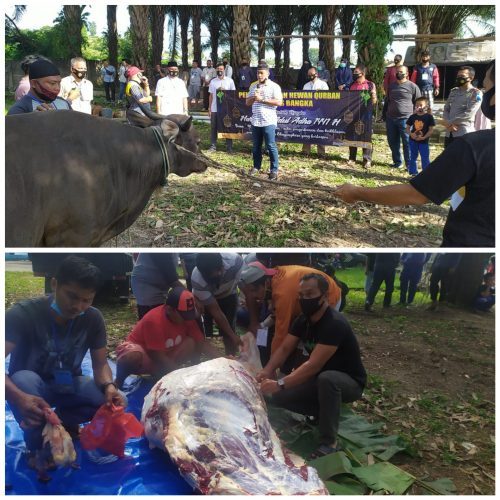 BANGKA, BABEL.IBERINDO.CO — Perayaan Hari Raya Idul Adha 1441 Hijriyah, Polres Bangka menyembelihan sebelas ekor hewan qurban. Di antaranya sembilan ekor sapi dan dua ekor kambing.