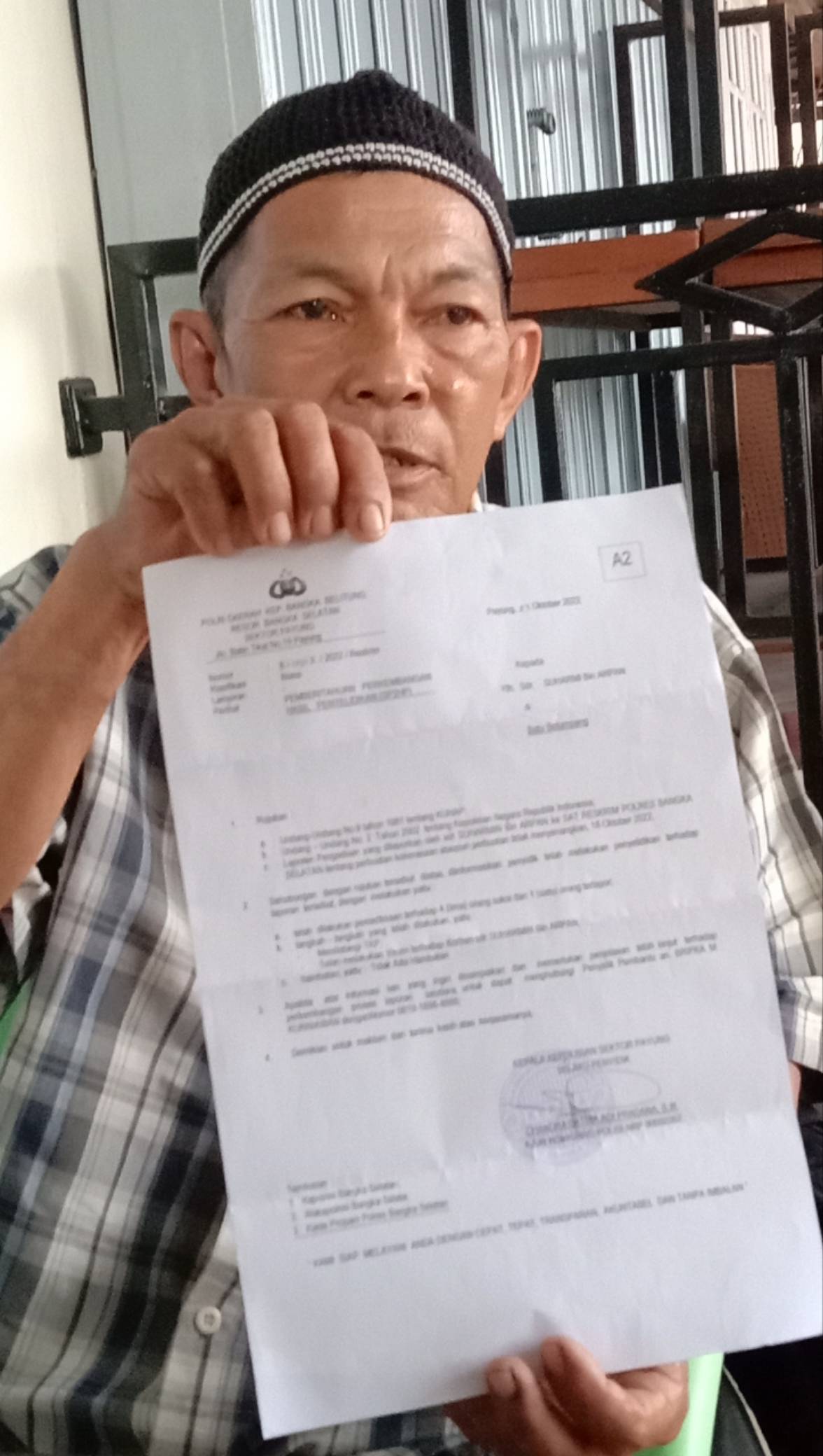 Padahal dikatakan Kakek Suharmi sebelumnya Kades Batu Betumpang TF sempat menantang Suharmi agar dilaporkan ke Polisi. Maka suharmi pun melakukan pelaporan dan minta perlindungan ke pihak polisi.