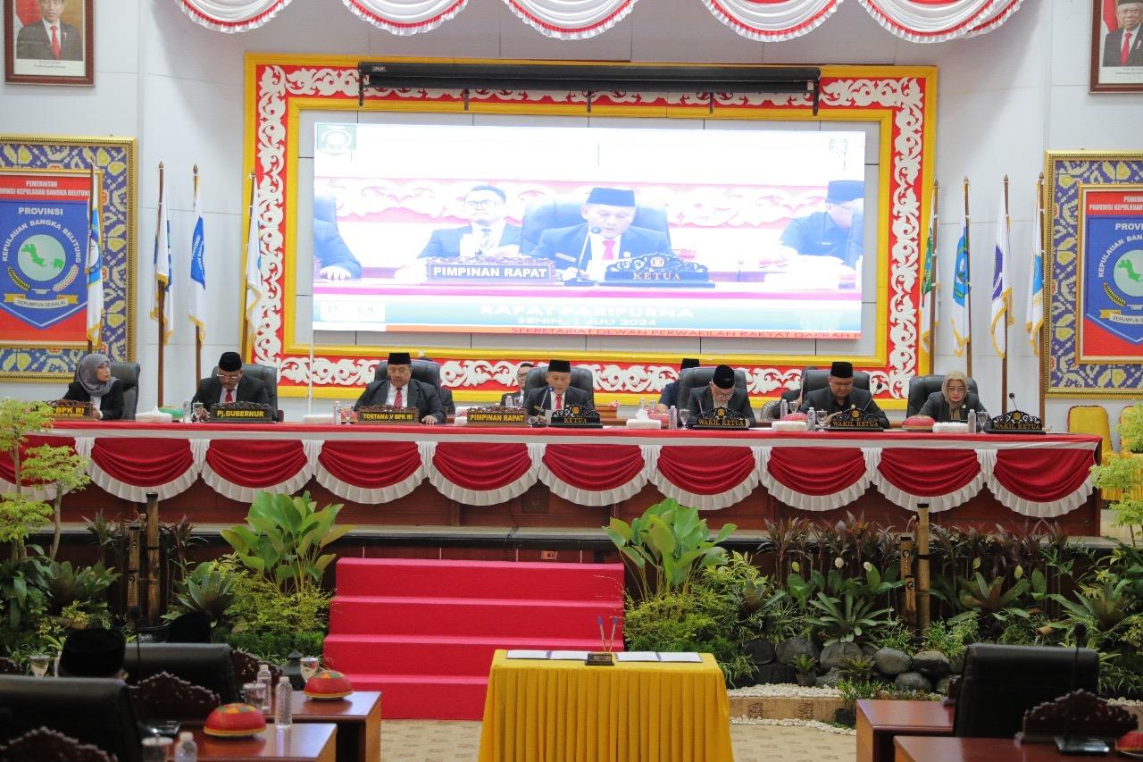 Hal ini disampaikan oleh Auditor Utama Keuangan V BPK RI, Slamet Kurniawan pada Rapat Paripurna Penyampaian Laporan Hasil Pemeriksaan Badan Pemeriksa Keuangan Republik Indonesia, Atas Laporan Keuangan Pemerintah Daerah Provinsi Kepulauan Bangka Belitung Tahun Anggaran 2023, bertempat di Ruang Rapat Paripurna DPRD Provinsi Kepulauan Bangka Belitung, Senin, (1/7/ 2024).
