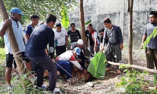 “Qurban sapi ini sumbangan dari relasi kita yang ikut berpartisipasi serta berbagi kegembiraan dalam merayakan hari raya idul adha,” ujarnya.