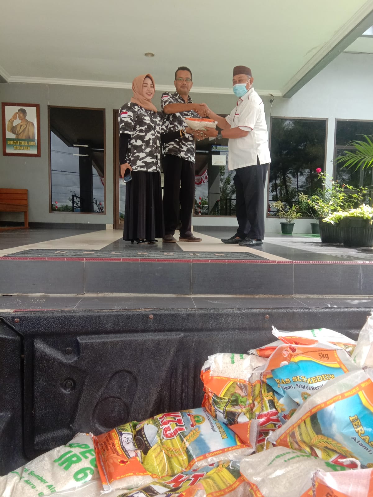 Bertempat di halaman kantor AITI Babel bantuan 100 karung beras diserahkan kepada perwakilan pengurus Bapera Babel.