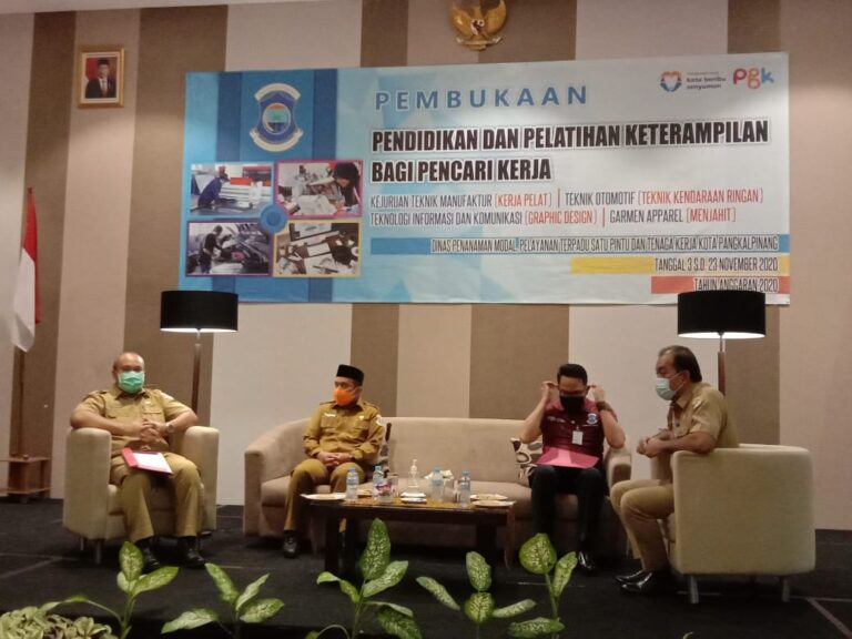 SIBERINDO, BABEL –Walikota Pangkalpinang Maulan Aklil secara resmi membuka pendidikan dan pelatihan keterampilan bagi Pencari Kerja (Pencaker) yang diselenggarakan oleh Dinas Penanaman Modal, Pelayanan Terpadu Satu Pintu dan Tenaga Kerja Kota Pangkalpinang.