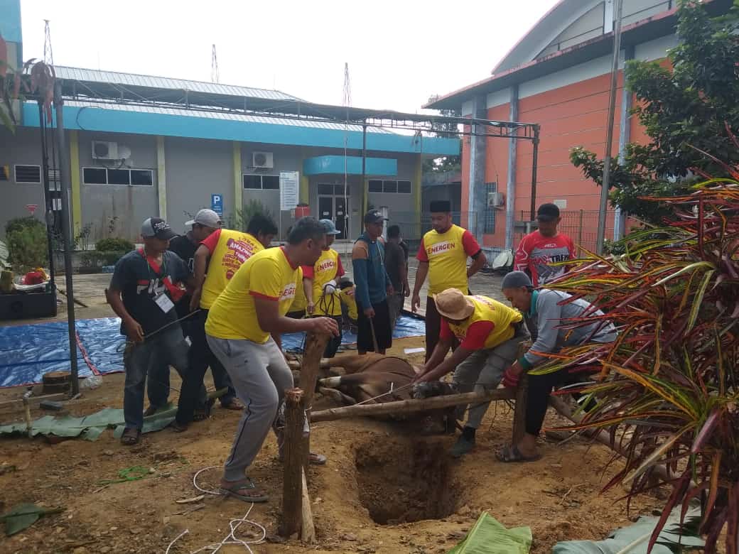 “Alhamdulillah Idul Adha tahun ini, kami dapat menyembelih hewan kurban sebanyak 9 ekor, 4 ekor sapi dan 5 ekor kambing, dengan rincian bahwa 3 ekor sapi adalah hewan kurban milik para jamaah melalui sistim arisan perorangan dan 1 ekor sapi titipan keluarga dari jamaah,” jelas Abu Bakar Usman selaku ketua panitia kurban yang juga diamanahkan masyarakat setempat sebagai ketua DKM.