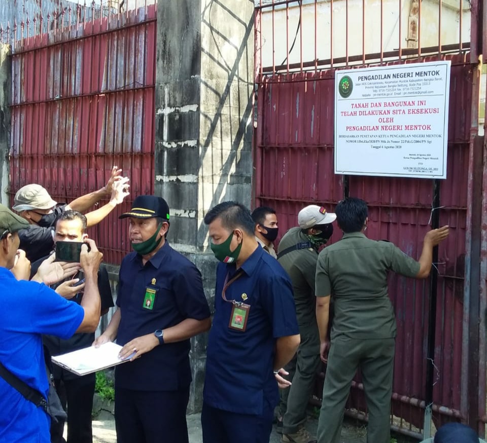 ” Hari ini baru tahap sita eksekusi, eksekusinya nanti kami lihat dulu barang apa yang ada di dalam. Kalau milik Termohon maka kami minta dikosongkan atau bisa dititipkan kepada Pemohon yang dalam hal ini telah dihibahkan ke Pemkab Bangka Bara,” tutupnya.