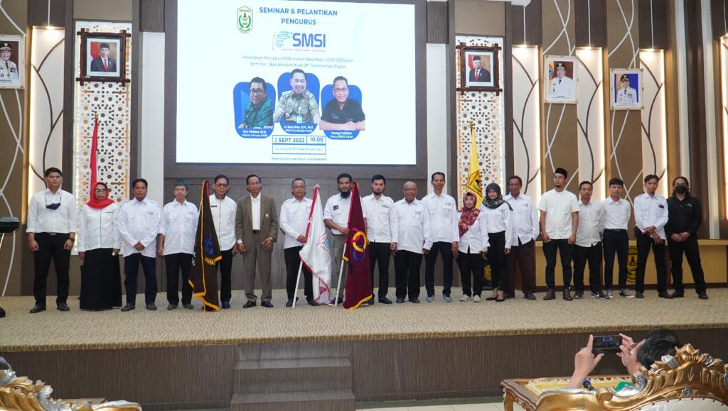 Siberindo.co Banjarmasin. Jajaran kepengurusan SMSI (Serikat Media Siber Indonesia) Provinsi Kalimantan Selatan (Kalsel) periode 2020 – 2025 resmi dilantik bersamaan dengan pelantikan Lembaga Bantuan Hukum (LBH) SMSI dan kepengurusan Millennials Cyber Media (MCM) Kalsel di Aula Kayuh Baimbai Kantor Walikota Banjarmasin Sabtu (3/9/2022).