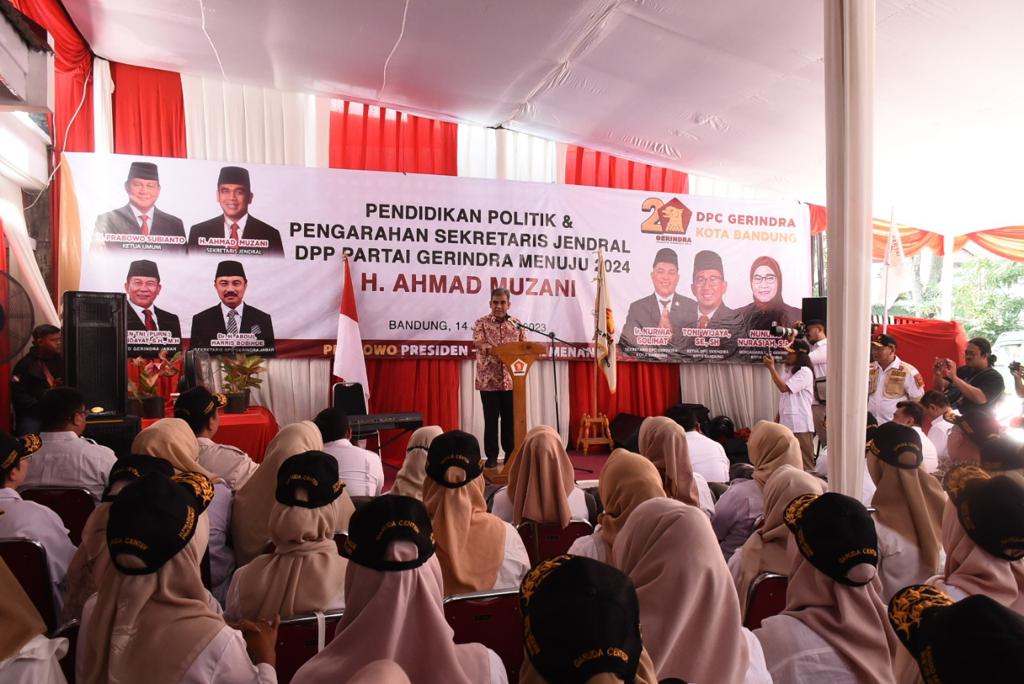 Dalam sambutannya, seperti dikutip dalam siaran pers yang diterima kantor pusat Serikat Media Siber Indonesia (SMSI), Muzani menargetkan Partai Gerindra harus menjadi pemenang pada Pemilu 2024 di Jawa Barat.