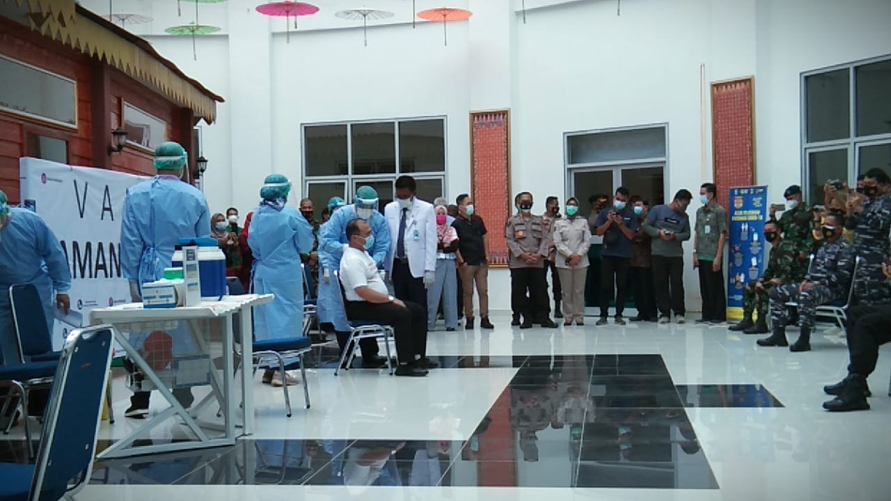 SIBERINDO, BABEL – Gubernur Provinsi Kepulauan Bangka Belitung (Babel), Erzaldi Rosman beserta Forum Koordinasi Pimpinan Daerah (Forkopimda) menerima vaksinasi perdana.