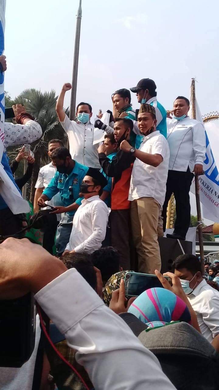 Selain menemui buruh, Pjs Bupati Serang dan DPRD Kabupaten Serang ikut tanda tangani Surat penolakan UU Ciptaker yang diajukan pendemo.