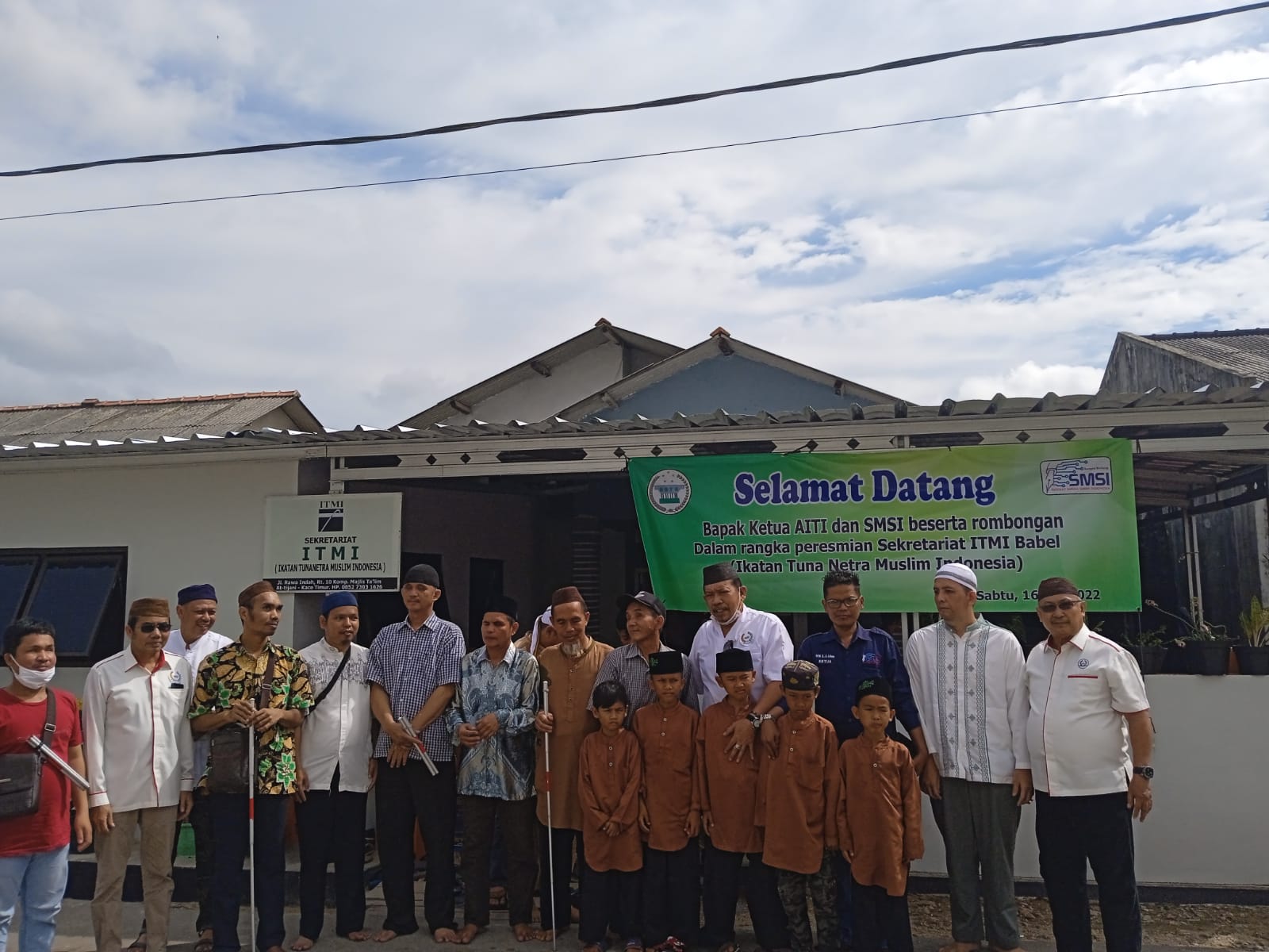 Siberindo.co.Pangkalpinang. Peresmian kantor sekretariat Ikatan Tunanetra Muslim Indonesia (ITMI Babel) dilaksanakan dan dihadiri oleh anggota ITMI (TMI Babel, rombongan pengurus AITI Babel dan SMSI Babel serta anak-anak yatim piatu Panti Asuhan Al Khoiriyah, Sabtu 16/07/2022 siang.