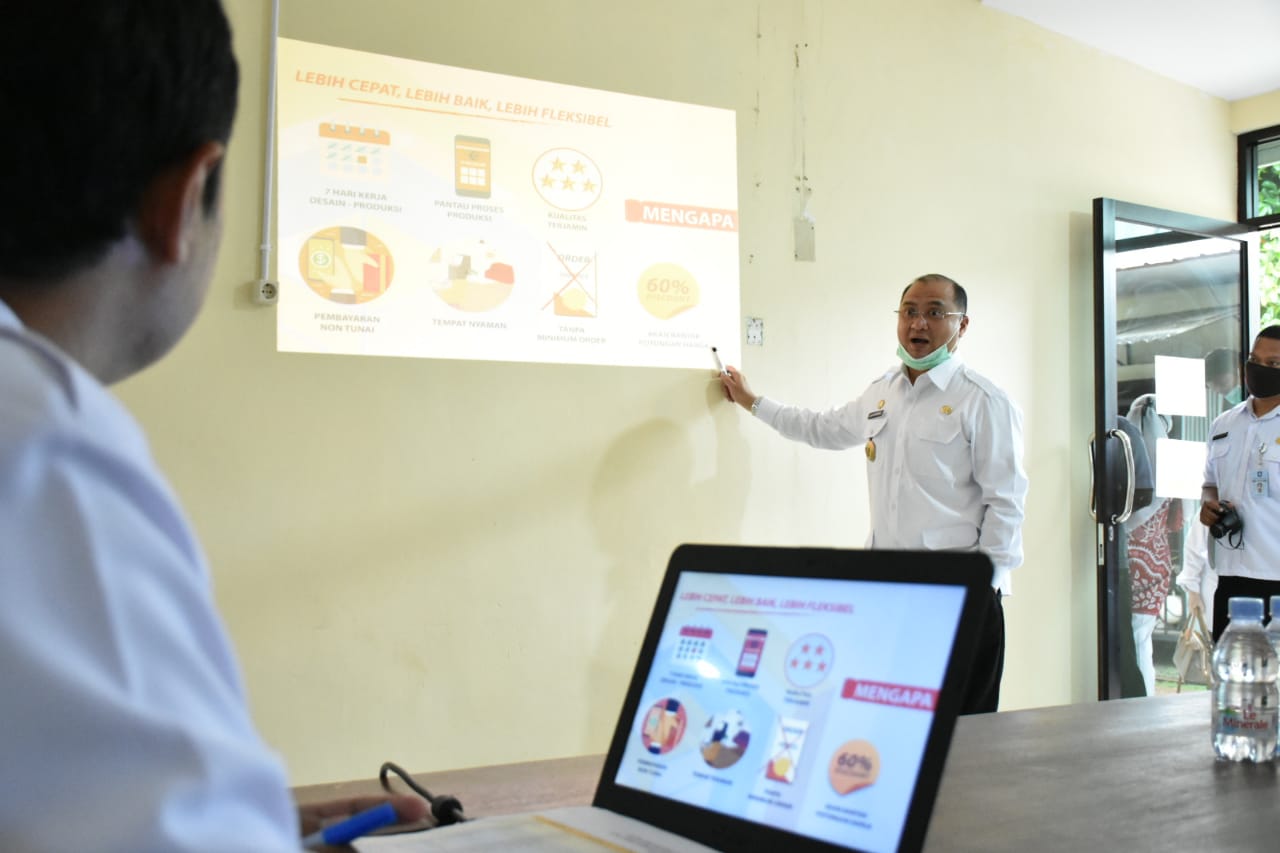Dr. Muslim El Hakim Kurniawan,ST.,MM selaku Kepala UPTD Rumah Promosi dan Kemasan (RPK) menjelaskan latar belakang pembagian 5.000 kemasan kepada pelaku usaha IKM se-Provinsi Kepulauan Babel itu berdasarkan hasil survey pada bulan Maret 2020, pada awal pandemi yang berdampak pada merosotnya omset para pelaku usaha IKM di Provinsi Babel.
