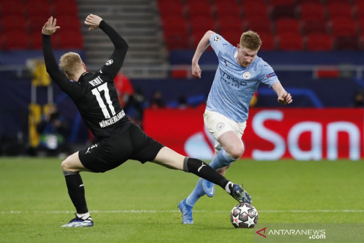 Jakarta- Manchester City meluncur mulus ke perempat final Liga Champions ketika dua gol dini yang dilesakkan Kevin De Bruyne dan Ilkay Gundogan menutup nasib Borussia Moenchengladbach dengan kekalahan 2-0 pada leg kedua di Budapest, Selasa (Rabu WIB), sehingga memastikan City menang dengan agregat 4-0.