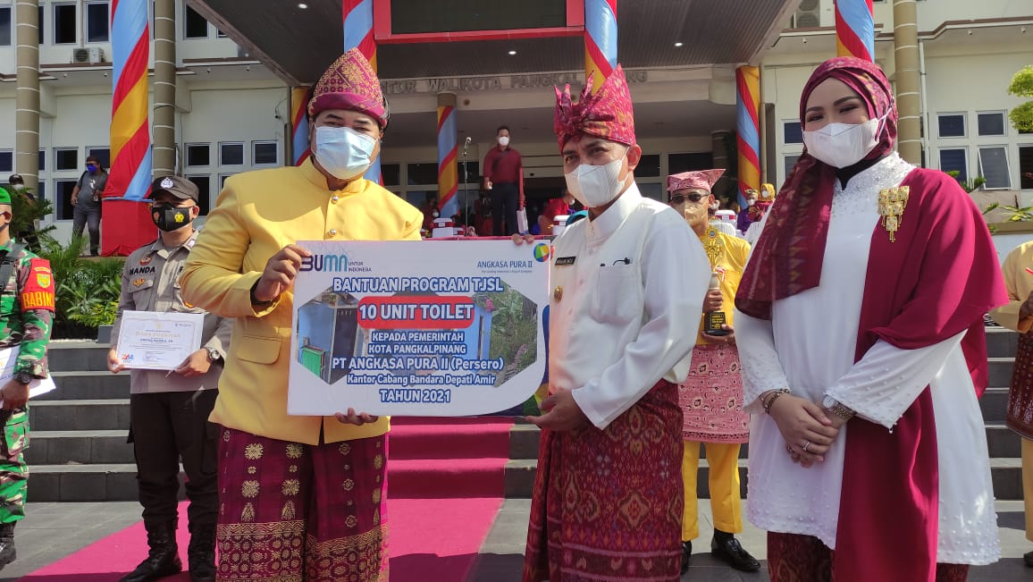 Di sela upacara peringatan Hari Ulang Tahun Pangkalpinang yang ke 264 tahun ini, AP II Bandara Depati Amir Pangkalpinang memberikan kado istimewa bagi warga kota beribu senyuman ini, yaitu 10 unit toilet bagi warga Pangkalpinang di beberapa kelurahan.