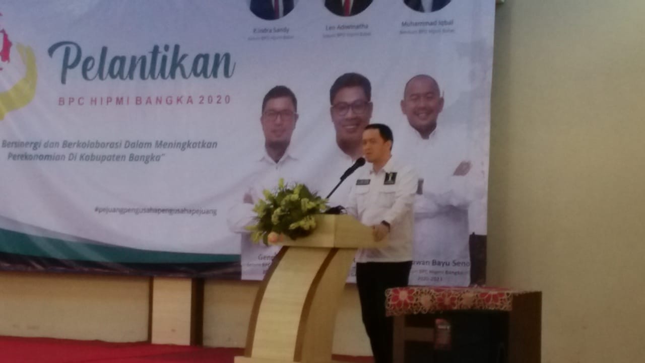 Sementara itu mewakili Bupati Bangka Syafrudin Selaku Staf ahli bidang Perekonomian Setda Bangka dalam amanatnya, bahwa atas nama Pemkab Bangka mengucapkan selamat dan sukses atas pelantikan pengurus HIPMI Bangka peiode 2020-2023, sesuia dengan hasil Musda pada beberapa waktu yang lalu, dengan hasil tersebut kini HIPMI Kabupaten Bangka telah memiliki kepengurusan yang sah dan selanjutnya akan ditetepkan menjadi BPC HIPMI Kabupaten Bangka.