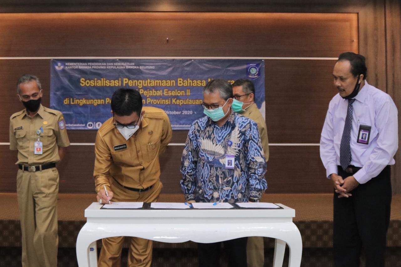 Sosialisasi ini dibuka langsung oleh Sekretaris Daerah (Sekda) Babel, Naziarto yang berlangsung di Ruang Pasir Padi Kantor Gubernur Kepulauan Bangka Belitung. Diakui Sekda Naziarto, sosialisasi ini sangat penting agar bahasa Indonesia diterapkan secara baik dan benar.