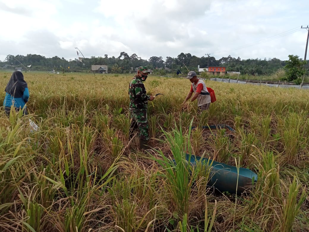 TNI Manunggal bersama rakyat melalui Babinsa dalam mendukung ketahanan pangan dengan penuh semangat terjun langsung ke sawah untuk membantu para petani saat memanen padi. Kegiatan tersebut merupakan salah satu upaya yang dilakukan dalam mempercepat masa panen yang dilakukan para petani di wilayah binaan.