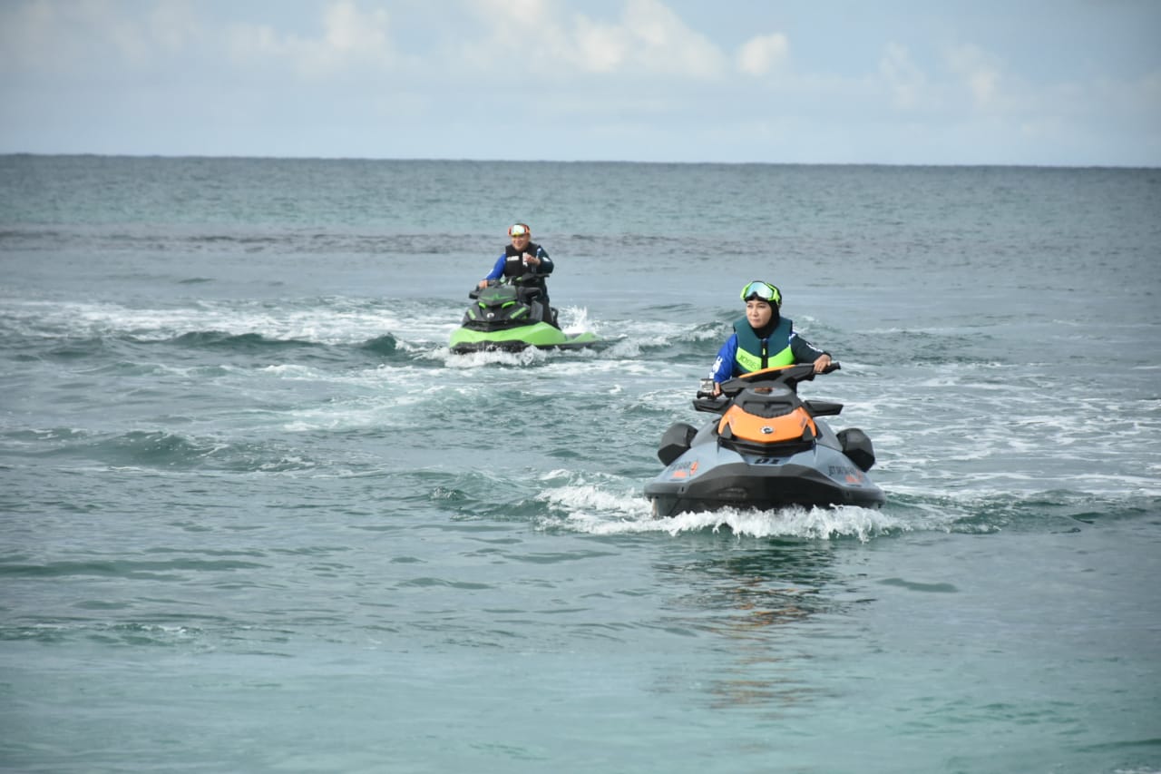 “Saya senang sekali diajak Pak Gubernur dan Ibu Hubernur berjet ski. Hal itu pertama kali saya bermain jetski,” ujar istri Danlanud Rudi Hartono.