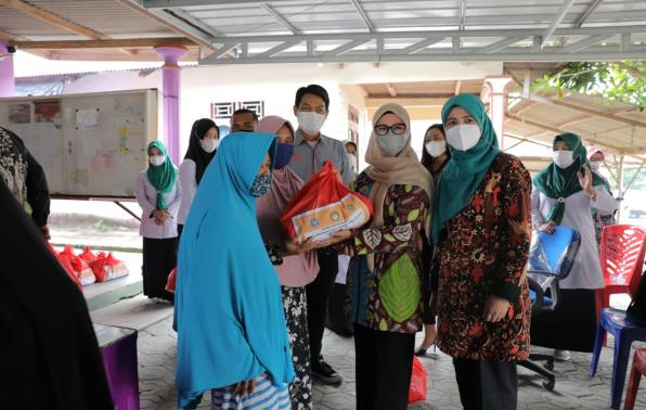 Selain memberi bantuan, kegiatan ini juga bertujuan untuk memberikan pengetahuan kepada masyarakat khususnya ibu rumah tangga agar cepat tanggap terhadap Covid-19.