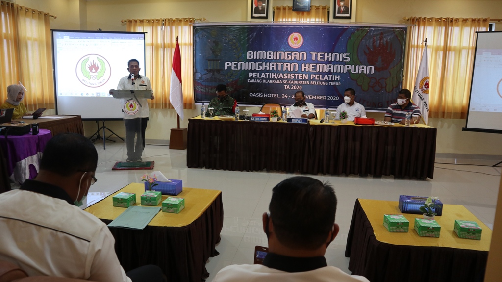SIBERINDO, BABEL — Sebanyak 50 pelatih  dari 28 cabang olahraga (cabor) di Kabupaten Belitung Timur (Beltim) mengikuti bimbingan teknis peningkatan kemampuan pelatih dan asisten pelatih pada setiap cabor di Hotel Oasis,Manggar, Selasa (24/11).