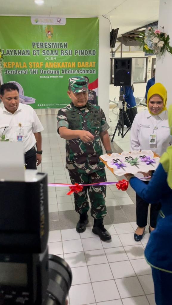 Peresmian layanan CT Scan ini dilakukan oleh Kepala Staf TNI Angkatan Darat (KSAD) Jenderal TNI Dr. Dudung Abdurachman, S.E, M.M di Rumah Sakit Umum Pindad Bandung, Senin tanggal 27 Maret 2023.
