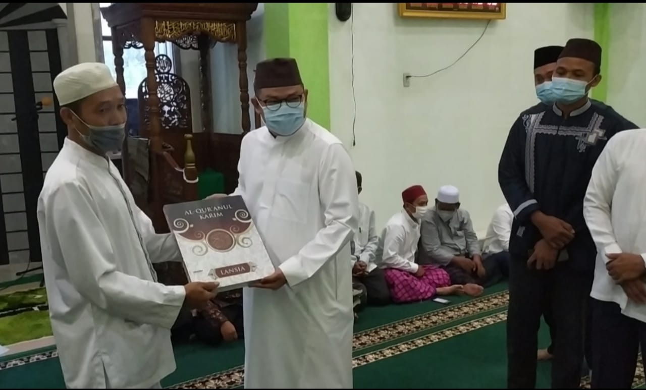 Penyerahan bantuan Al Quran itu diserahkan secara simbolis melalui ulama setempat di Masjid Nurussalam desa Bencah saat menghadiri acara safari Ramadhan, Kamis (28/4/21).