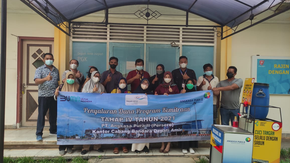 Bertempat di kantor bandara, Rabu 29/12/2021, PUMK tahap keempat sebesar Rp. 205.000.000 kembali disalurkan kepada sembilan Mitra Binaan PT AP II Bandara Depati Amir Pangkalpinang.