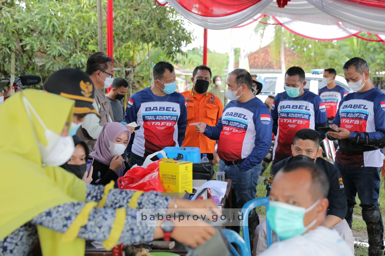 SIBERINDO, BABEL – Pelaksanaan vaksinasi Covid-19 gelombang kedua di Desa Jeriji, Kabupaten Bangka Selatan (Basel) berjalan dengan lancar saat ditinjau Gubernur Kepulauan Bangka Belitung (Babel), Erzaldi Rosman bersama Forkopimda Babel, Minggu (29/8/21).