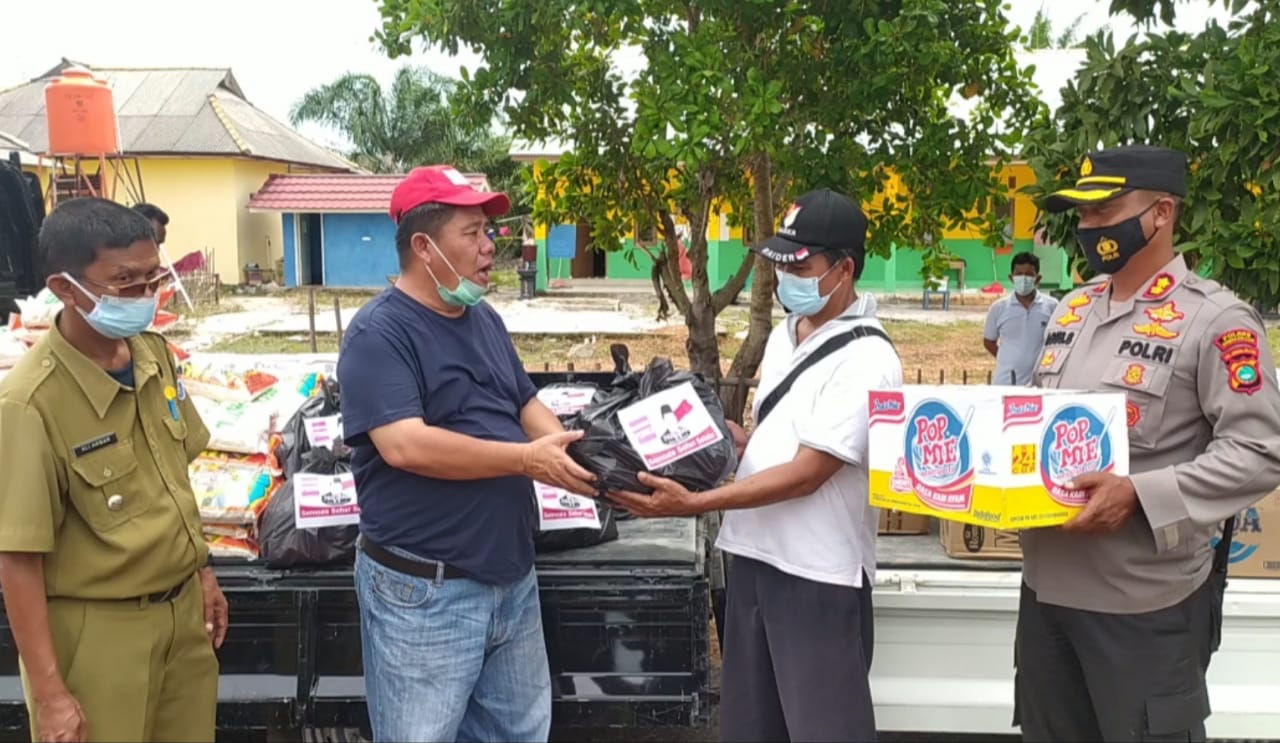 Penyerahan bantuan tersebut diserahkan secara simbolis kepada Kepala Desa Sadai M Amin dan Wakil Ketua Satgas Penanganan Covid 19 Bangka Selatan AKBP Agus Siswanto di depan tempat karantina desa Sadai, Selasa (30/3/21).