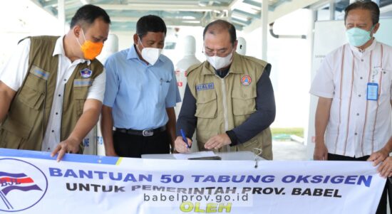 SIBERINDO, BABEL – Pemerintah Provinsi Kepulauan Bangka Belitung (Pemprov. Babel) menerima bantuan tabung oksigen sebanyak 50 tabung dari Perusahaan Pelayaran PT Bangka