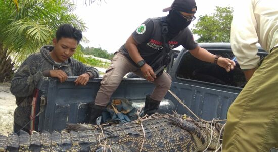 BANGKA BARAT — Kemunculan seekor buaya muara di area Sirkuit Grass Track Andri 1031 di Desa Sekar Biru Kecamatan Parittiga membuat heboh