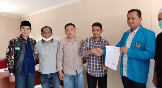 TOBOALI – Peserta Bakal Calon Ketua KNPI Agam Primadi menyerahkan formulir pendaftaran ke karateker (panitia pelaksana Musda) KNPI Bangka Selatan (Basel) pada