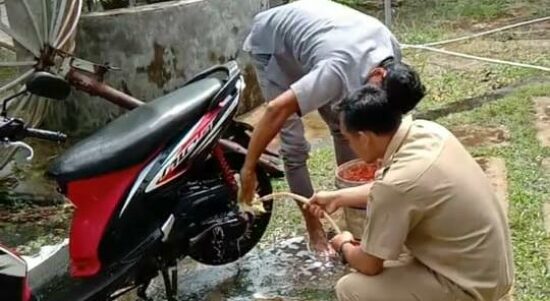 Khusus Hari Ibu, Pegawai DKP Cuci Motor Gratis, Syaratnya Seorang Ibu!