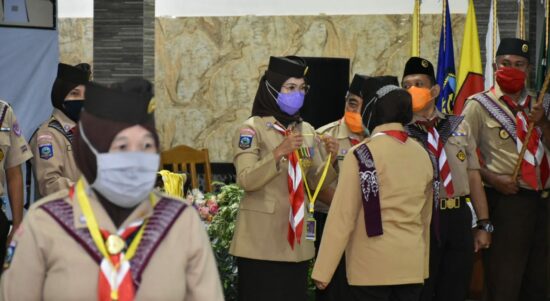 SIBERINDO, BABEL – Ketua Kwartir Daerah Gerakan Pramuka Provinsi Kepulauan Bangka Belitung, Melati Erzaldi menyematkan tanda peserta kepada seluruh peserta Kursus Pelatih