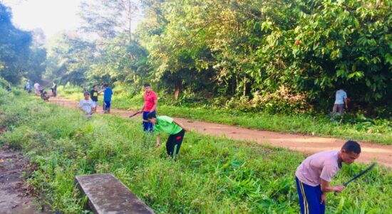 Gotong Royong Mahasiswa Universitas Bangka Belitung Bersama Warga Desa Pebuar