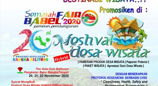 SIBERINDO, BABEL – Festival Desa Wisata Bangka Belitung merupakan rangkaian dari kegiatan Semarak Babel Fair 2020 Hybrid. Kegiatan ini akan berlangsung di