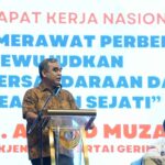 Sekjen Partai Gerindra Ahmad Muzani hadir dalam acara Rapat Kerja Nasional Gerakan Kristiani Indonesia Raya (GEKIRA) di Hotel Bidakara, Sabtu (3/8). GEKIRA