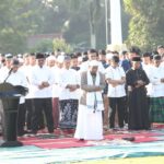 Penjabat (Pj) Gubernur Kepulauan Bangka Belitung Safrizal ZA beserta keluarga melaksanakan salat idulfitri 1445 H di Halaman Kantor Gubernur Kepulauan Bangka Belitung,